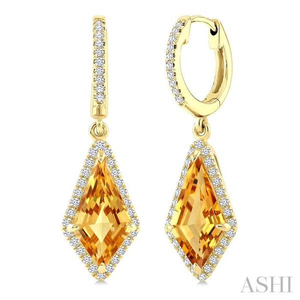 12X5 MM Kite Shape Citrine and 1/3 Ctw Round Cut Diamond Semi-Precious Earrings in 10K Yellow Gold Image 2 Becker's Jewelers Burlington, IA