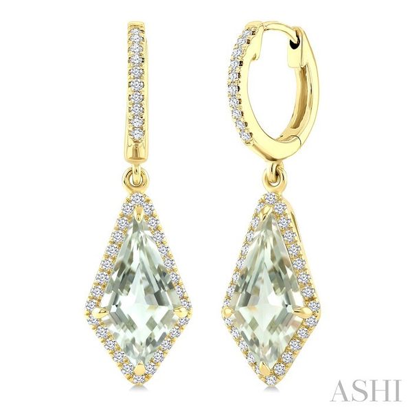 12X5 MM Kite Shape Green Amethyst and 1/3 Ctw Round Cut Diamond Semi-Precious Earrings in 10K Yellow Gold Image 2 Becker's Jewelers Burlington, IA