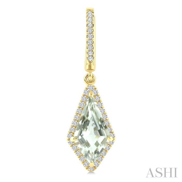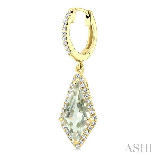 12X5 MM Kite Shape Green Amethyst and 1/3 Ctw Round Cut Diamond Semi-Precious Earrings in 10K Yellow Gold Image 3 Becker's Jewelers Burlington, IA
