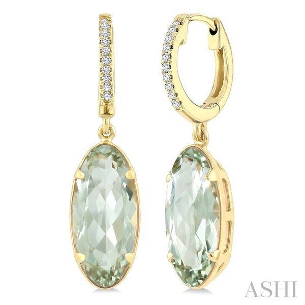 12X5 MM Oval Shape Green Amethyst and 1/10 Ctw Round Cut Diamond Semi-Precious Earrings in 10K Yellow Gold Image 2 Becker's Jewelers Burlington, IA