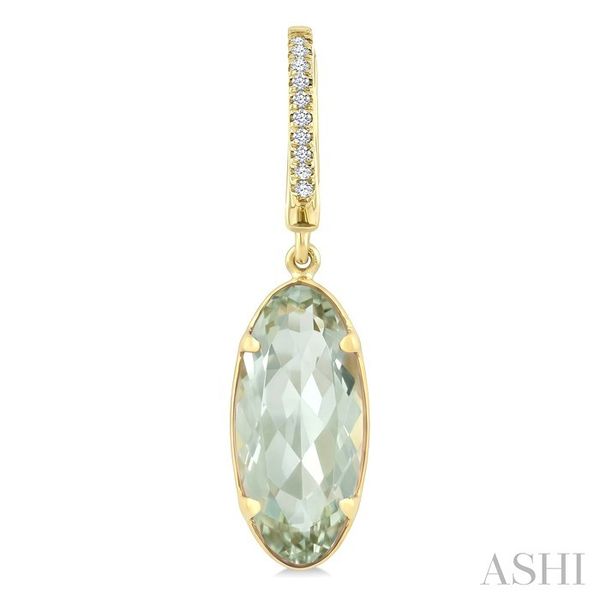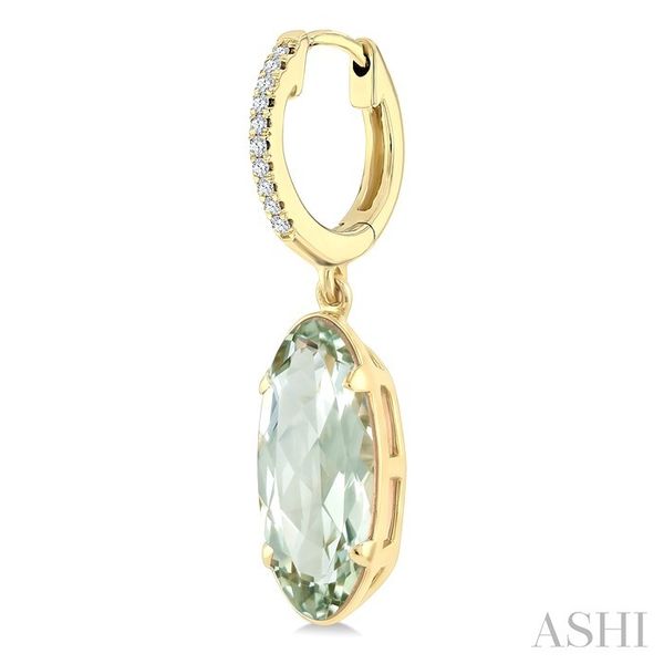 12X5 MM Oval Shape Green Amethyst and 1/10 Ctw Round Cut Diamond Semi-Precious Earrings in 10K Yellow Gold Image 3 Becker's Jewelers Burlington, IA