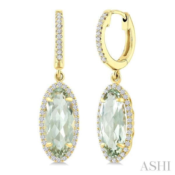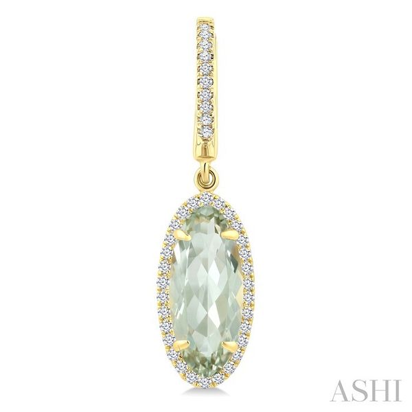 12X5 MM Oval Shape Green Amethyst and 1/3 Ctw Round Cut Diamond Semi-Precious Earrings in 10K Yellow Gold Image 2 Becker's Jewelers Burlington, IA