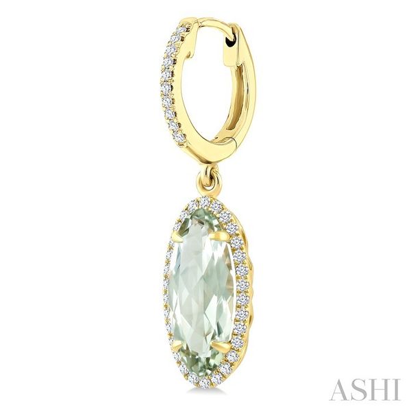 12X5 MM Oval Shape Green Amethyst and 1/3 Ctw Round Cut Diamond Semi-Precious Earrings in 10K Yellow Gold Image 3 Becker's Jewelers Burlington, IA