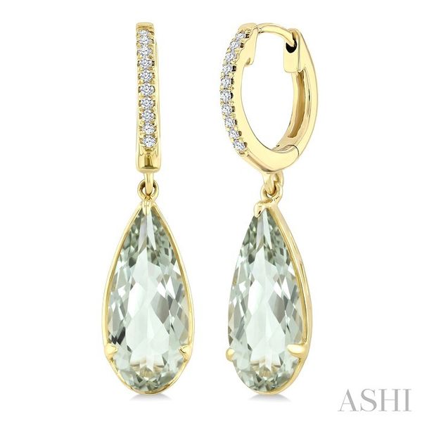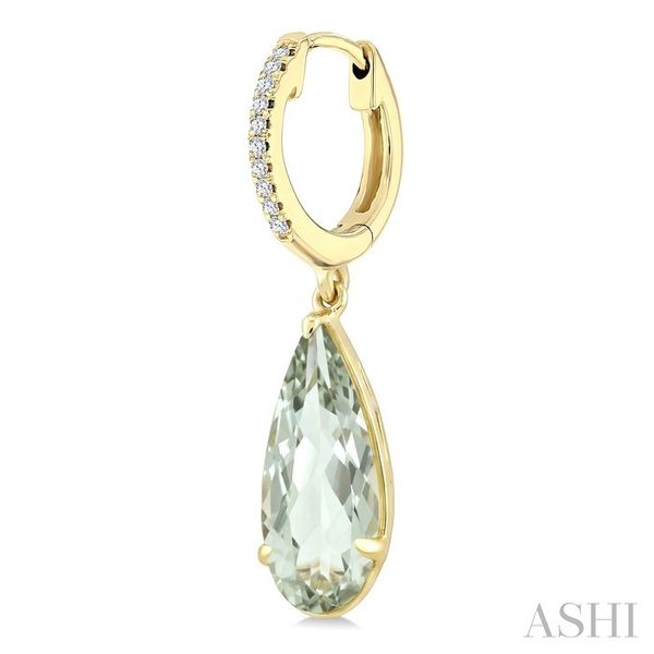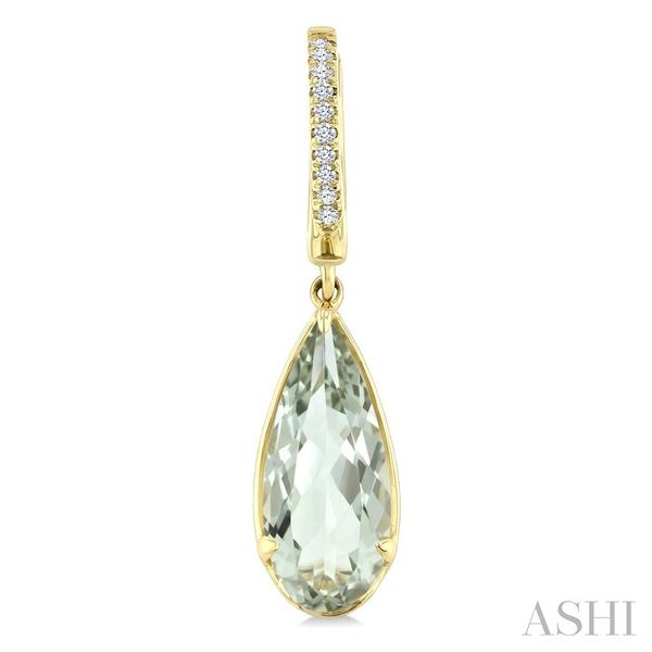 12X5 MM Pear Shape Green Amethyst and 1/10 Ctw Round Cut Diamond Semi-Precious Earrings in 10K Yellow Gold Image 3 Becker's Jewelers Burlington, IA