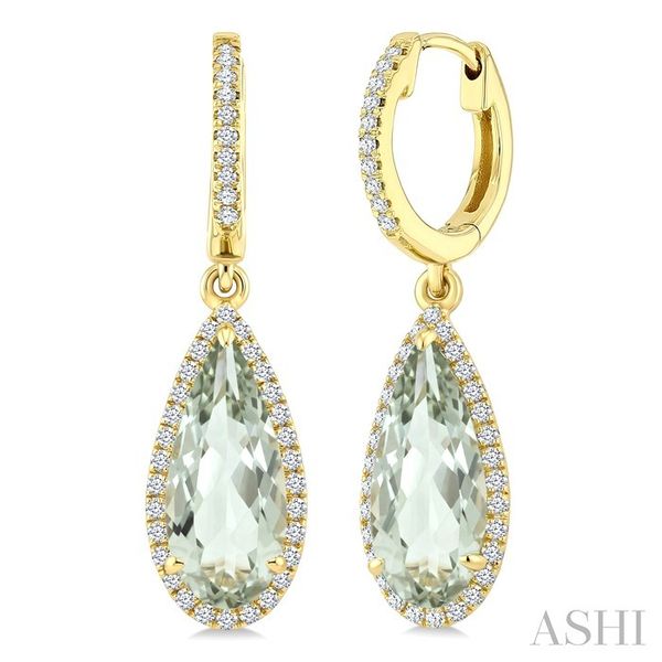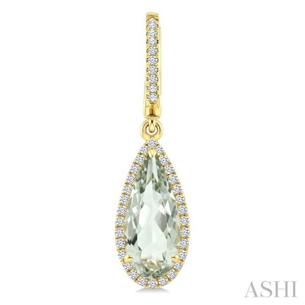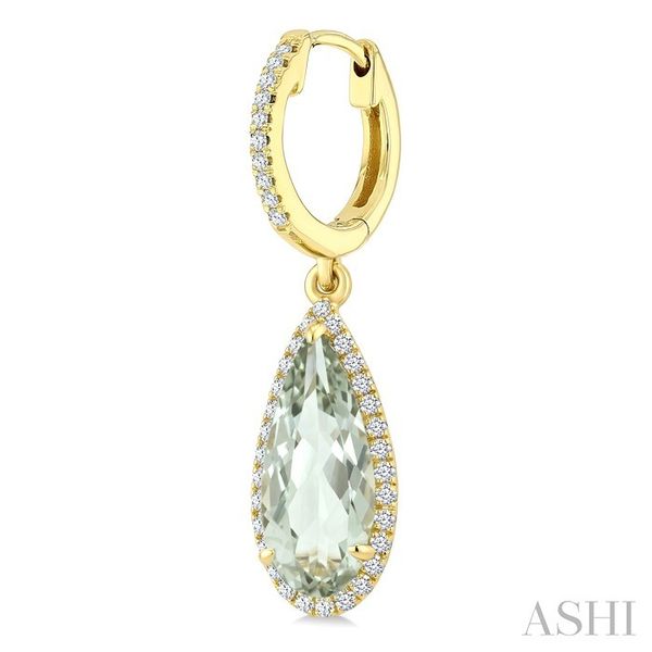 12X5 MM Pear Shape Green Amethyst and 1/3 Ctw Round Cut Diamond Semi-Precious Earrings in 10K Yellow Gold Image 3 Becker's Jewelers Burlington, IA