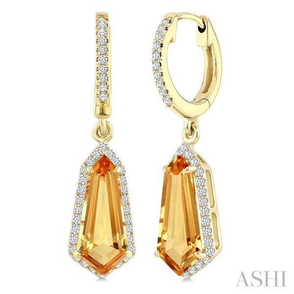 12X5 MM Shield Shape Citrine and 1/3 Ctw Round Cut Diamond Semi-Precious Earrings in 10K Yellow Gold Image 2 Becker's Jewelers Burlington, IA