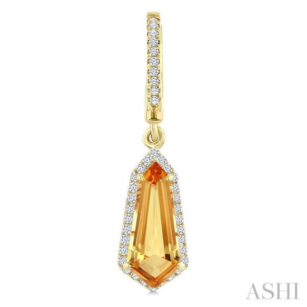 12X5 MM Shield Shape Citrine and 1/3 Ctw Round Cut Diamond Semi-Precious Earrings in 10K Yellow Gold Image 3 Becker's Jewelers Burlington, IA