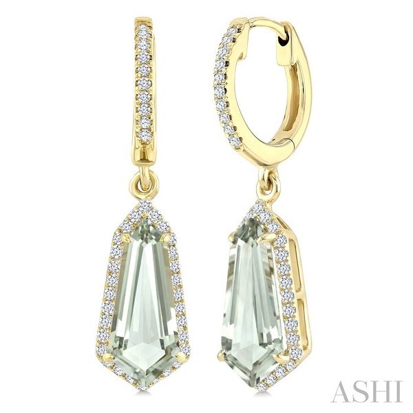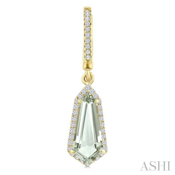 12X5 MM Shield Shape Green Amethyst and 1/3 Ctw Round Cut Diamond Semi-Precious Earrings in 10K Yellow Gold Image 2 Becker's Jewelers Burlington, IA