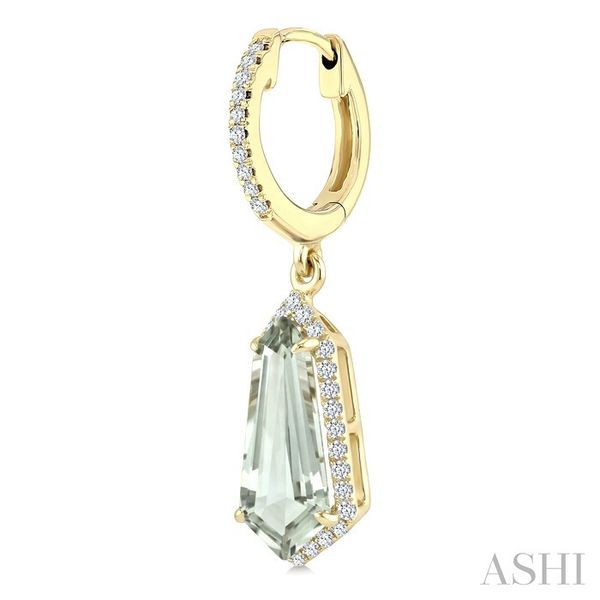 12X5 MM Shield Shape Green Amethyst and 1/3 Ctw Round Cut Diamond Semi-Precious Earrings in 10K Yellow Gold Image 3 Becker's Jewelers Burlington, IA