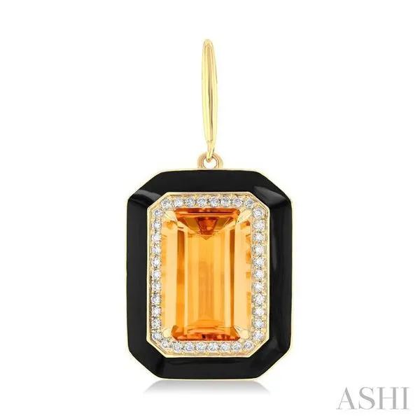 (319) 752-319612x8 MM Emerald Cut Citrine and 1/3 Ctw Round Cut Diamond Halo & Black Enamel Border Semi-Precious Earrings in 14K Yellow Gold