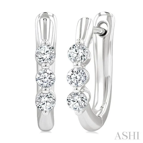 (319) 752-31961/3 Ctw 3-Stone Round Cut Diamond Fashion Hoop Earring in 14K White Gold