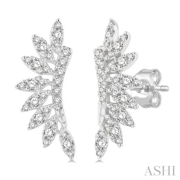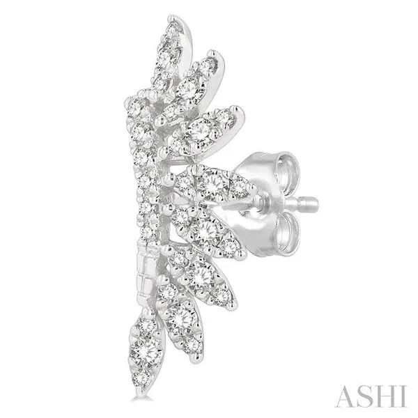 (319) 752-31961/3 Ctw Arched Marquise Projection Single Cut Diamond Petite Fashion Earring in 14K White Gold