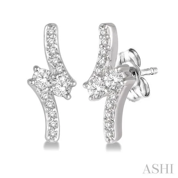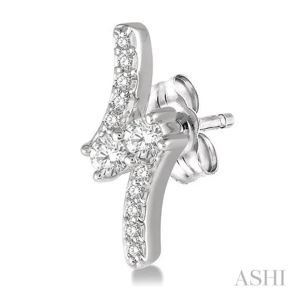 1/3 Ctw Asymmetrical 2Stone Round Cut Diamond Earrings in 14K White Gold Image 3 Becker's Jewelers Burlington, IA