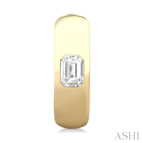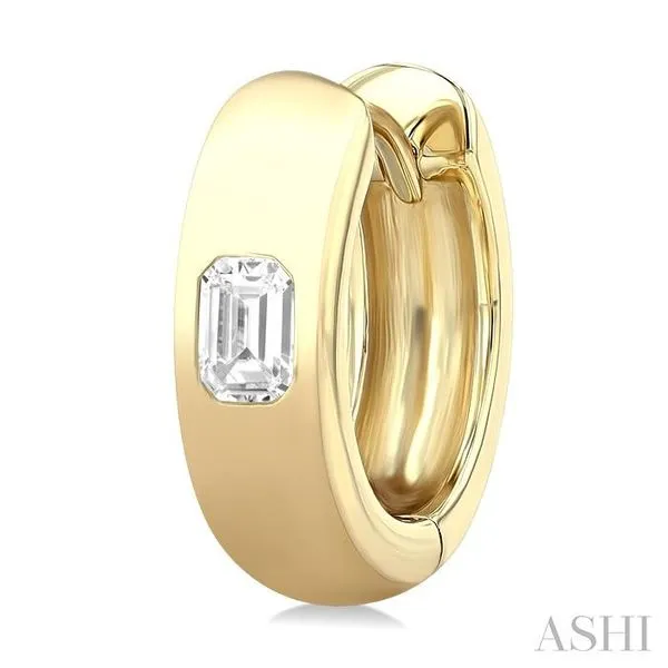 (319) 752-31961/3 Ctw Bezel Set Emerald Cut Diamond Fashion Huggie Earrings in 14K Yellow Gold