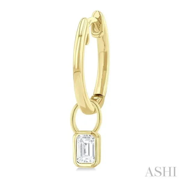 (319) 752-31961/3 Ctw Bezel Set Emerald Cut Diamond Huggie Earrings in 14K Yellow Gold