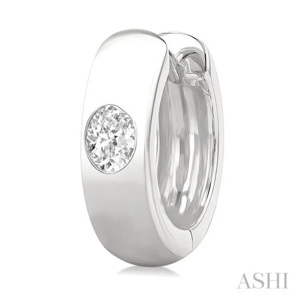 (319) 752-31961/3 Ctw Bezel Set Oval Cut Diamond Fashion Huggie Earrings in 14K White Gold