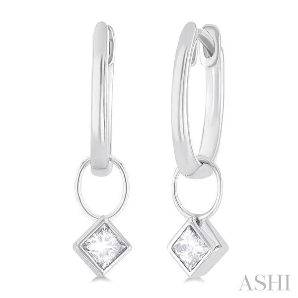 (319) 752-31961/3 Ctw Bezel Set Princess Cut Diamond Huggie Earrings in 10K White Gold