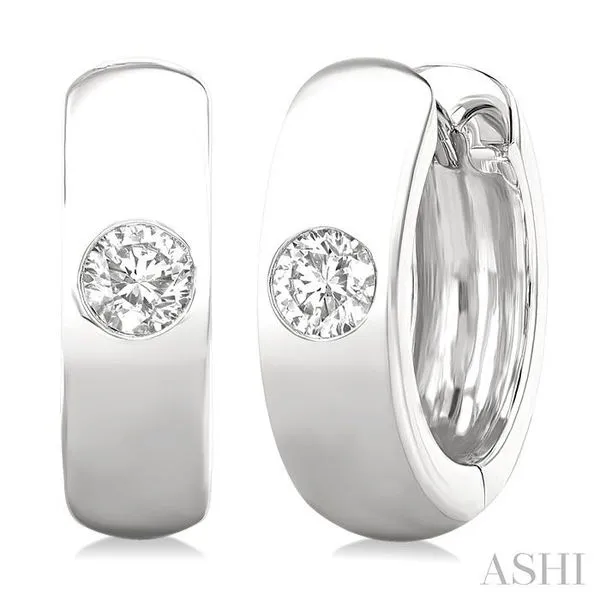 (319) 752-31961/3 Ctw Bezel Set Round Cut Diamond Fashion Huggie Earrings in 14K White Gold