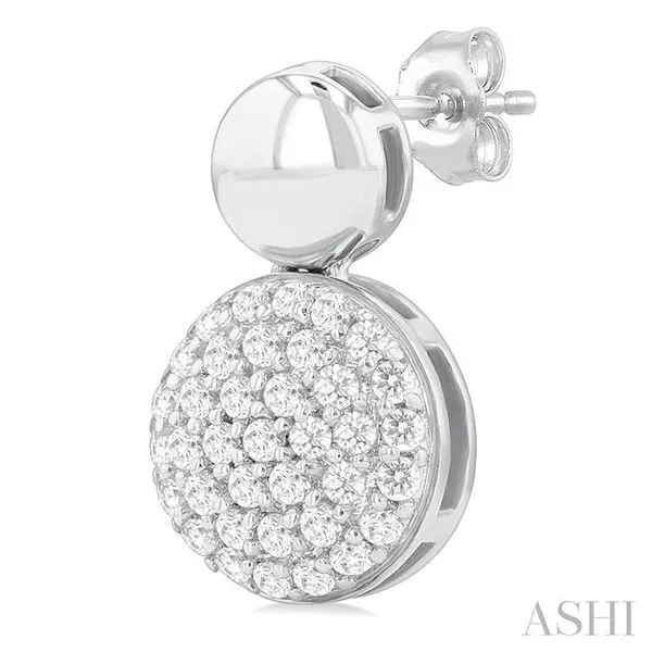 (319) 752-31961/3 Ctw Circular Mount Pave Set Round Cut Diamond Fashion Earring in 10K White Gold