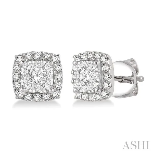 (319) 752-31961/3 Ctw Cushion Shape Lovebright Round Cut Diamond Stud Earrings in 14K White Gold