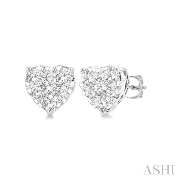 (319) 752-31961/3 Ctw Heart Shape Lovebright Round Cut Diamond Stud Earring in 14K White Gold