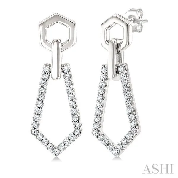 (319) 752-31961/3 Ctw Hexagon Shape Round Cut Diamond Fashion Earrings in 10K White Gold