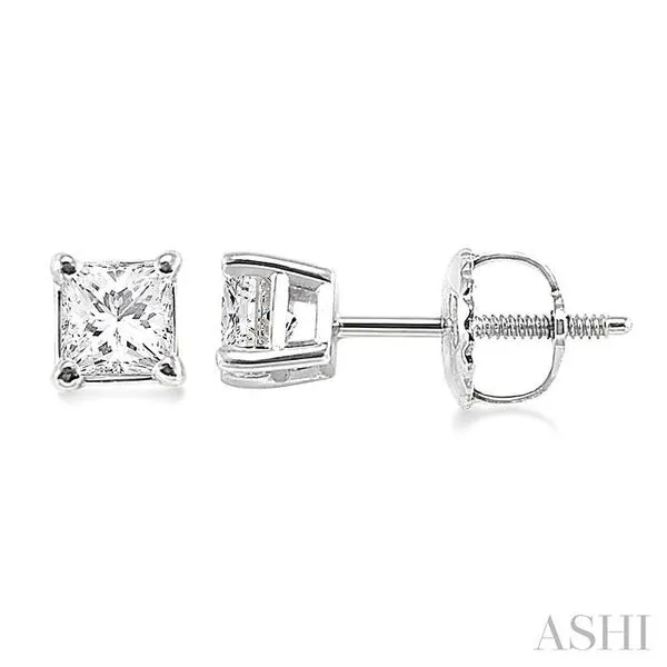(319) 752-31961/3 Ctw Princess Cut Diamond Stud Earrings in 14K White Gold