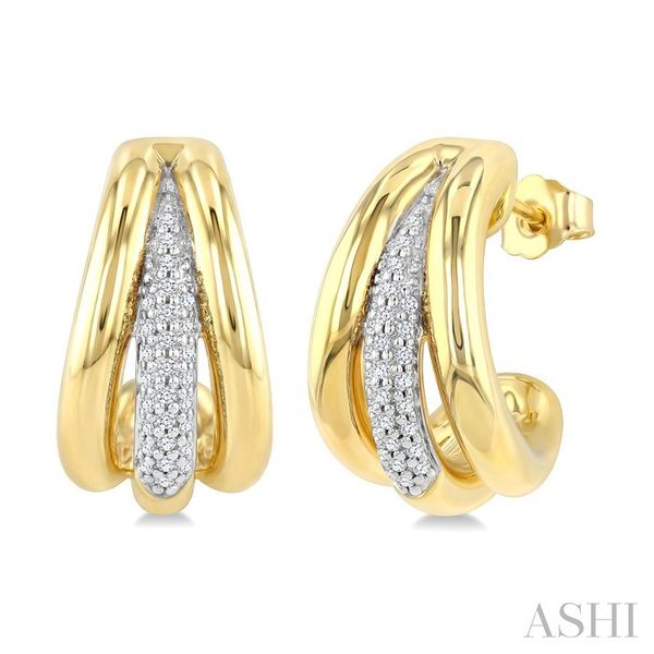 1/3 Ctw Round Cut Diamond Bold Fashion Half Hoop Earrings in 14K Yellow and White Gold Image 2 Becker's Jewelers Burlington, IA