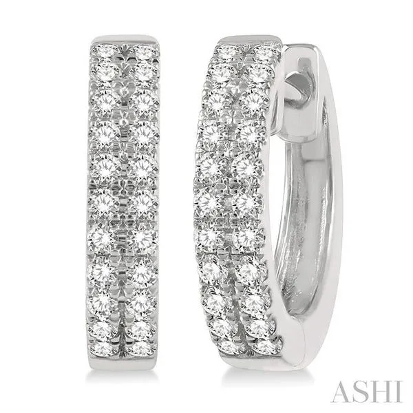 (319) 752-31961/3 Ctw Twin Row Round Cut Diamond Petite Fashion Huggie Earrings in 14K White Gold
