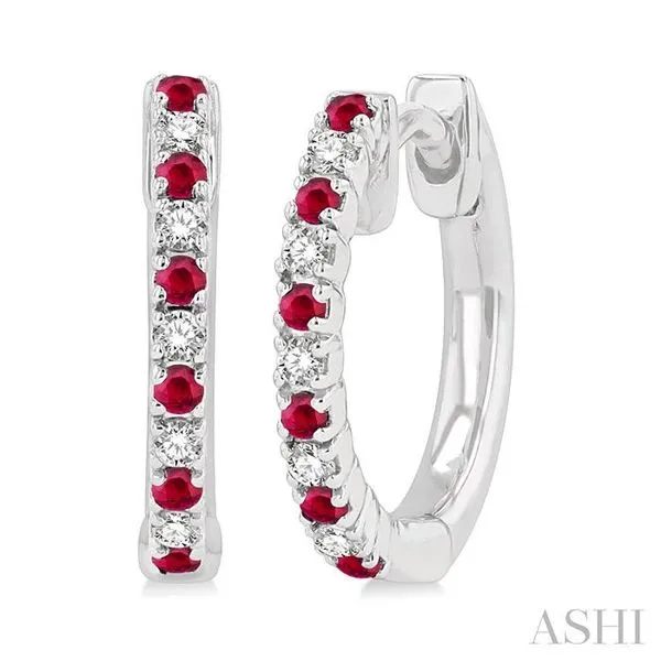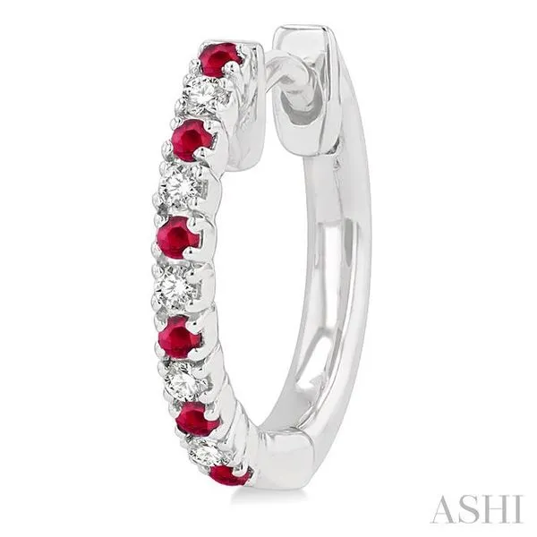 (319) 752-31961.35 MM Round Shape Ruby and 1/10 Ctw Round Cut Diamond Petite Precious Fashion Huggies in 10K White Gold