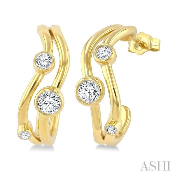 1/4 Ctw Bezel Set Round Cut Diamond Fashion Half Hoop Earrings in 14K Yellow Gold Image 3 Becker's Jewelers Burlington, IA