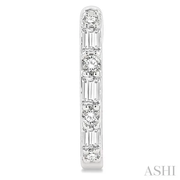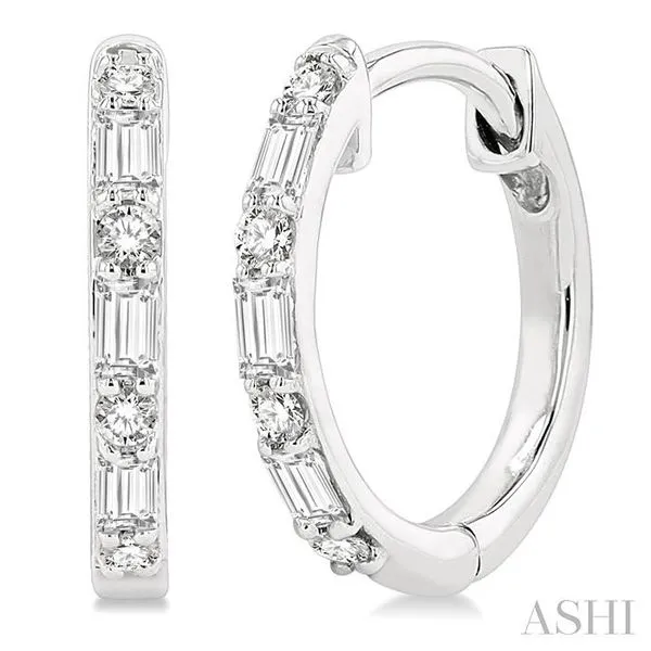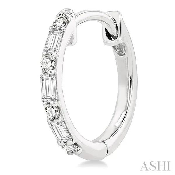 (319) 752-31961/4 Ctw Petite Baguette and Round Cut Diamond Fashion Huggies in 10K White Gold