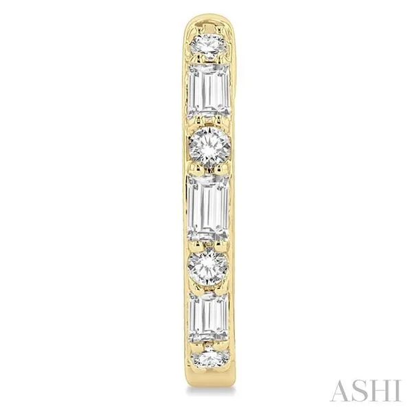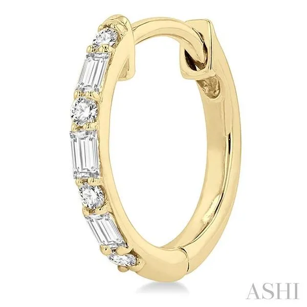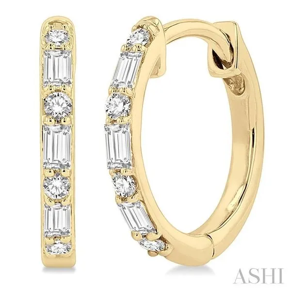 (319) 752-31961/4 Ctw Petite Baguette and Round Cut Diamond Fashion Huggies in 10K Yellow Gold