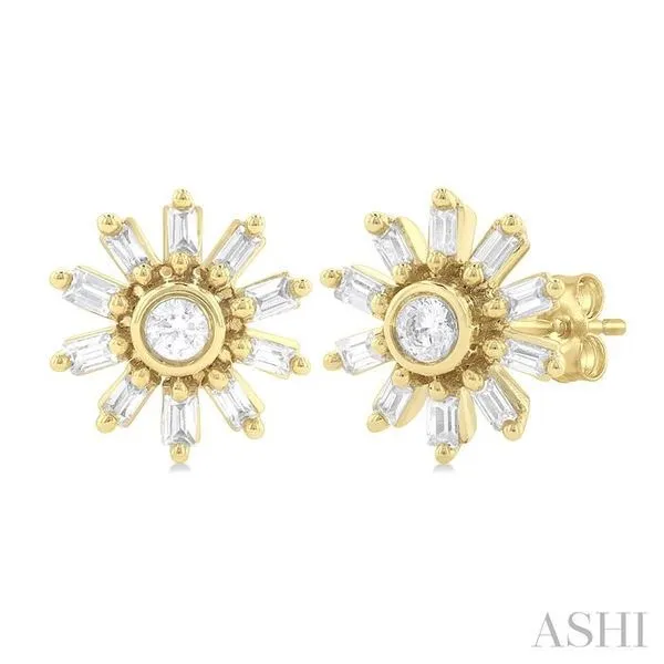 (319) 752-31961/4 Ctw Petite Wheel Baguette and Round Cut Diamond Fashion Stud Earring in 10K Yellow Gold