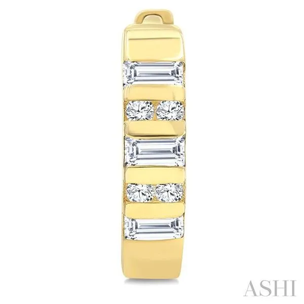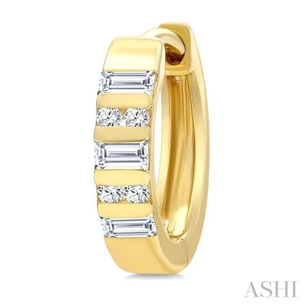 (319) 752-31961/4 Ctw Ribbed Baguette and Round Cut Diamond Huggie Petite Earrings in 10K Yellow Gold