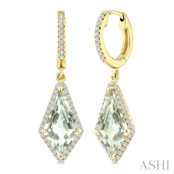 14X7 MM Kite Shape Green Amethyst and 1/3 Ctw Round Cut Diamond Semi-Precious Earrings in 14K Yellow Gold Image 2 Becker's Jewelers Burlington, IA