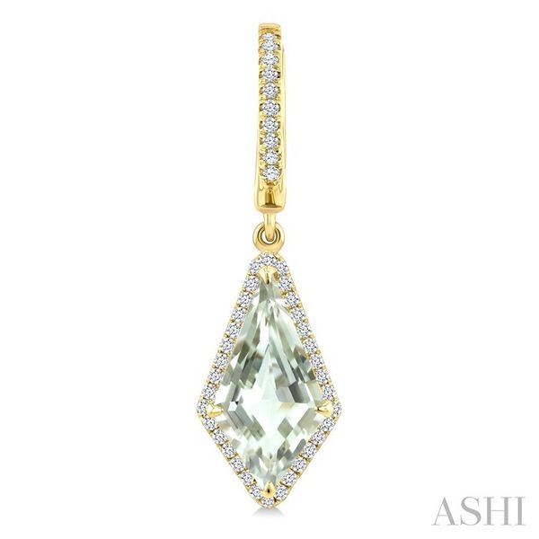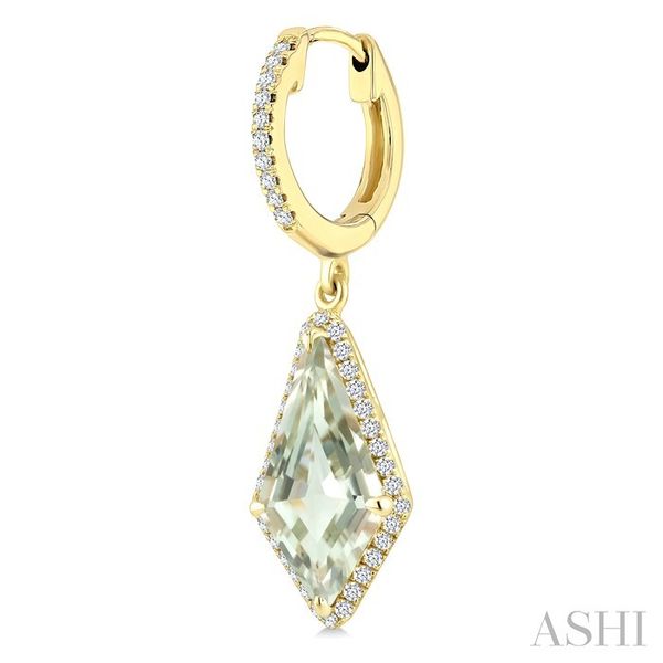 14X7 MM Kite Shape Green Amethyst and 1/3 Ctw Round Cut Diamond Semi-Precious Earrings in 14K Yellow Gold Image 3 Becker's Jewelers Burlington, IA