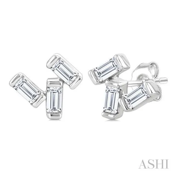 (319) 752-31961/5 Ctw Baguette Diamond Petite Fashion Earrings in 10K White Gold