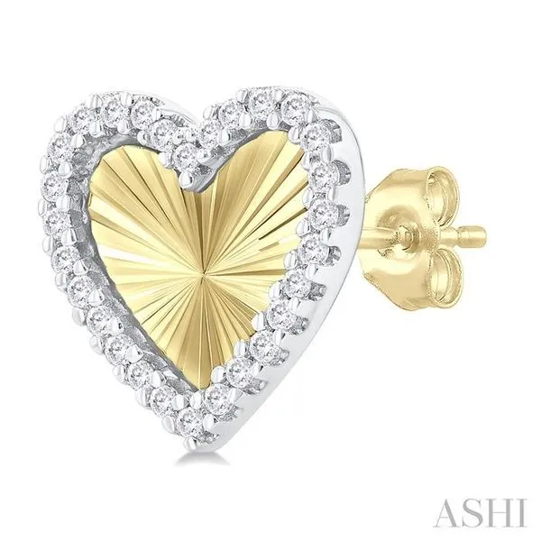 (319) 752-31961/5 Ctw Fluted Texture Heart Shape Round Cut Diamond Fashion Stud Earring in 10K Yellow and White Gold