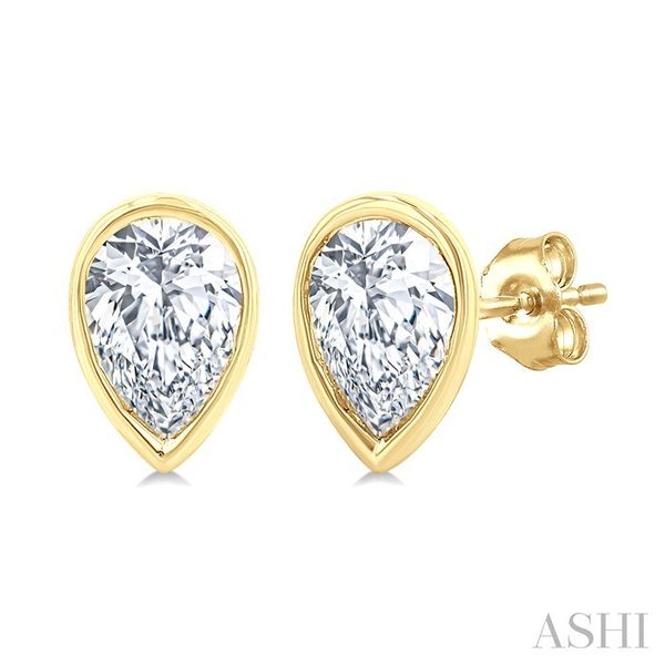 1/5 Ctw Petite Bezel Set Pear Cut Diamond Fashion Stud Earring in 14K Yellow Gold Image 2 Becker's Jewelers Burlington, IA