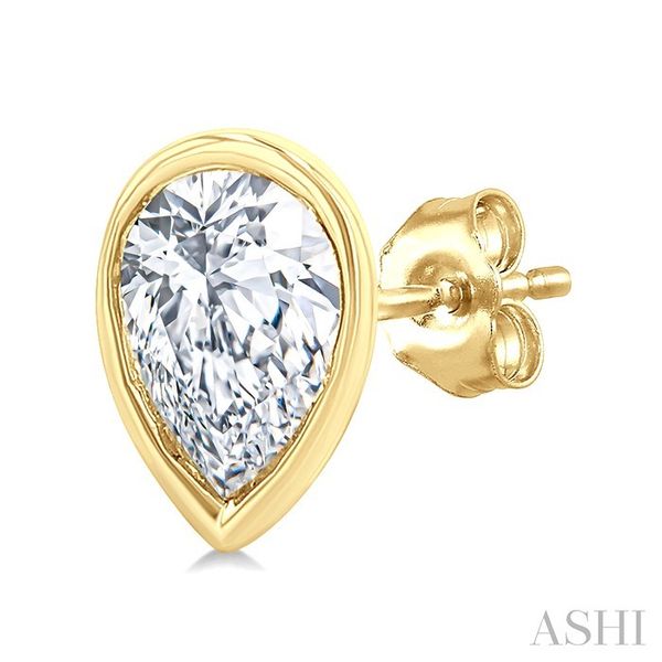 1/5 Ctw Petite Bezel Set Pear Cut Diamond Fashion Stud Earring in 14K Yellow Gold Image 3 Becker's Jewelers Burlington, IA