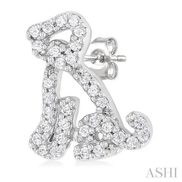 (319) 752-31961/5 Ctw Petite Seated Dog Round Cut Diamond Fashion Stud Earring in 10K White Gold