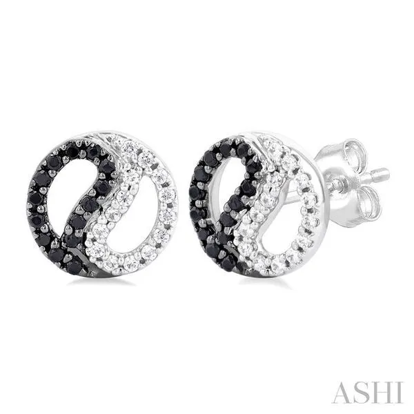 (319) 752-31961/5 Ctw Petite Yin Yang Black & White Round Cut Diamond Fashion Stud Earring in 10K White Gold
