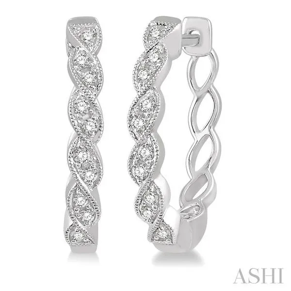 (319) 752-31961/6 Ctw Braided Pattern Round Cut Diamond Hoop Earrings in 10K White Gold