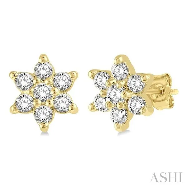 (319) 752-31961/6 Ctw Floral Round Cut Diamond Petite Fashion Earring in 10K Yellow Gold