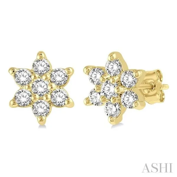 (319) 752-31961/6 Ctw Floral Round Cut Diamond Petite Fashion Earring in 14K Yellow Gold