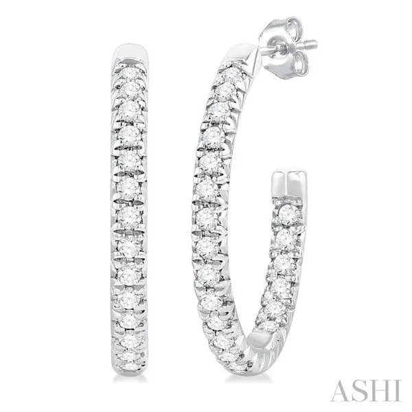 (319) 752-31961/6 Ctw French Pave Set Round Cut Diamond Fashion Half Hoop Earring in 14K White Gold