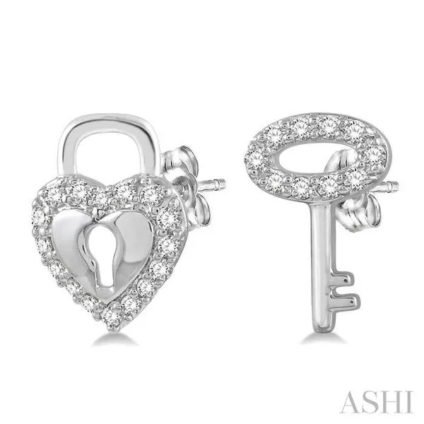 (319) 752-31961/6 Ctw Heart Lock & Key Charm Round Cut Diamond Earrings in 10K White Gold