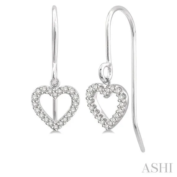 (319) 752-31961/6 Ctw Hollow Cut Heart Charm Round Cut Diamond Petite Earrings in 10K White Gold