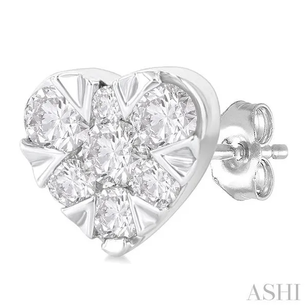 (319) 752-31961/6 Ctw Lovebright Petite Heart Shape Round Cut Diamond Fashion Stud Earring in 10K White Gold